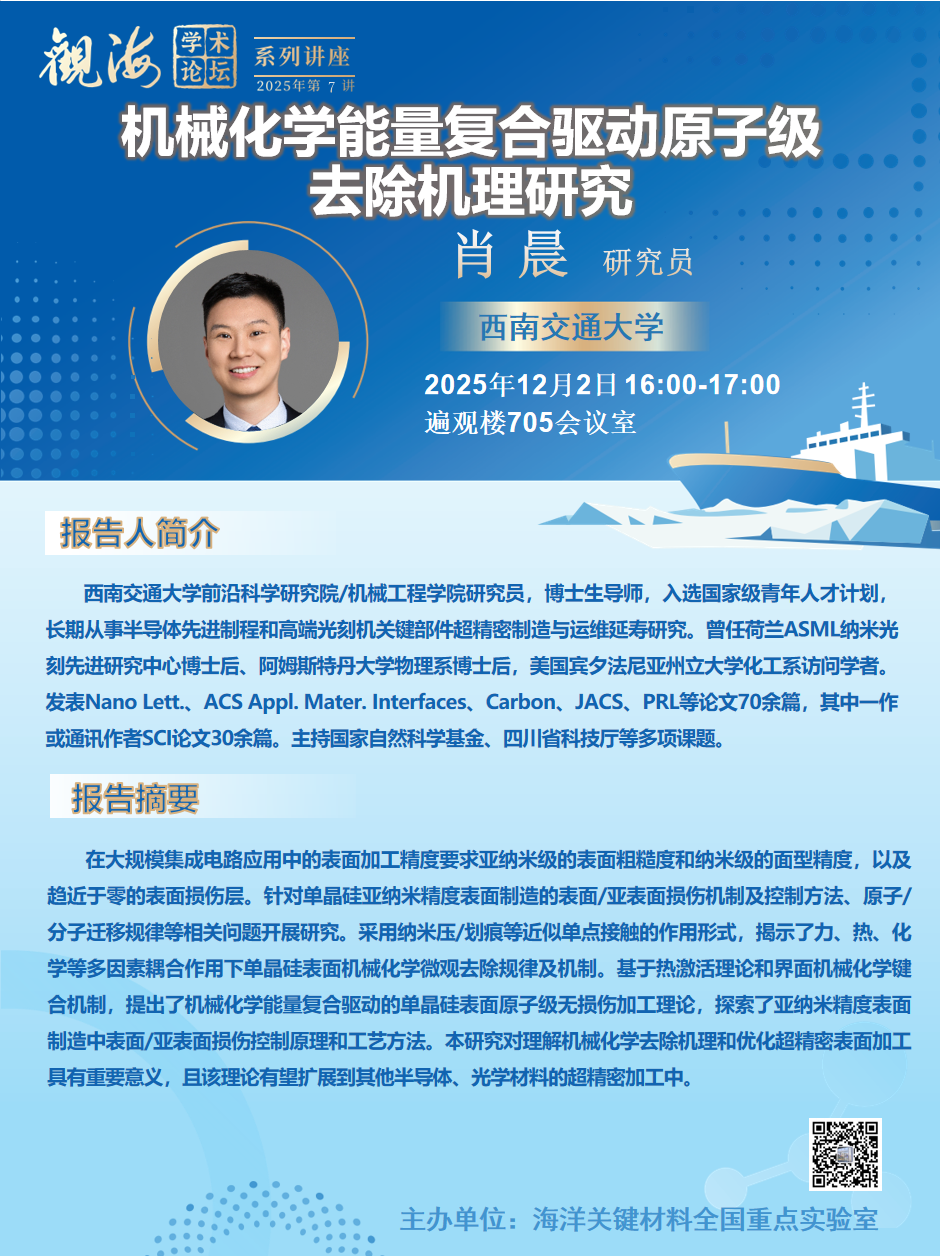 【学术论坛】机械化学能量复合驱动原子级去除机理研究
